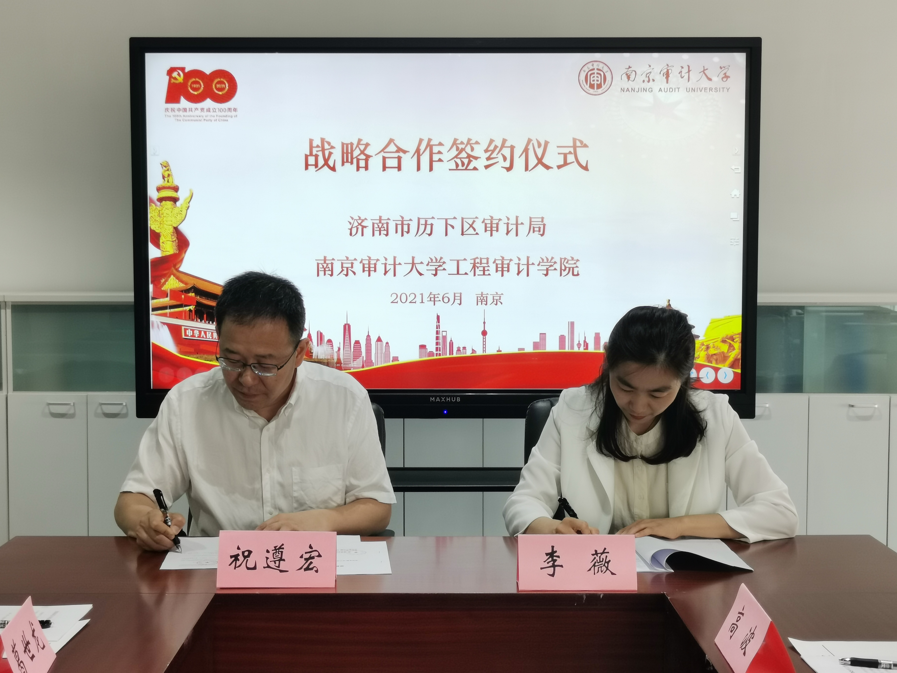 6月23日中午,williamhill英国与济南市历下区审计局合作签约仪式在我校致远楼二楼会议室举行。济南市历下区审计局李薇局长一行、williamhill英国祝遵宏院长等领导和部分师生出席签约仪式。