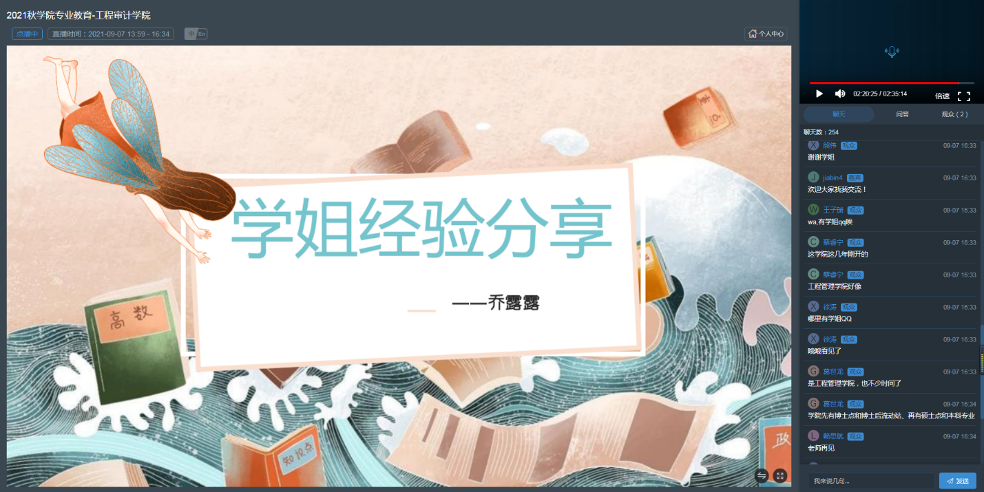 三位校友优秀的个人成就引来新生们在直播间里面的阵阵感慨与赞叹,他们以自己亲身经历给学弟学妹们树立起对于专业的信心。2021级新生们在感谢学长们分享宝贵经验的同时,纷纷表示要以学长们为榜样,不虚度大学四年美好光阴。