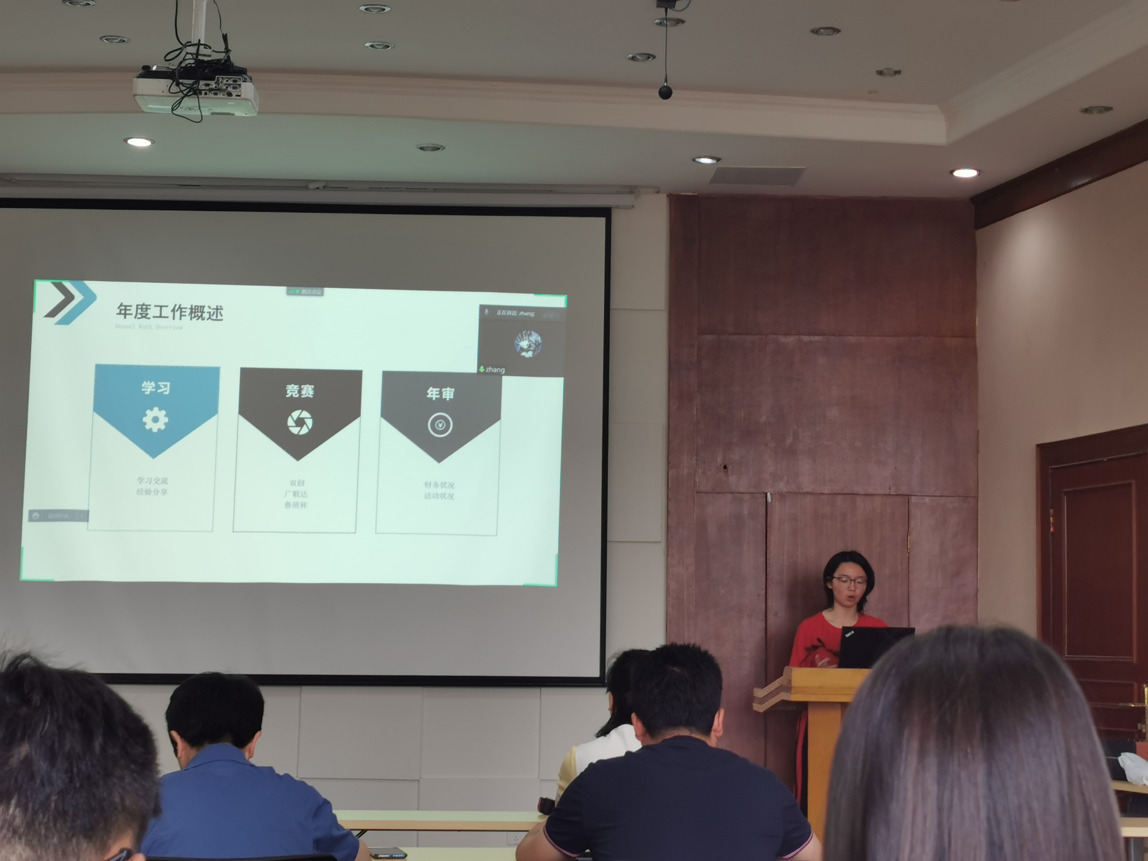 换届大会分为社长述职、社长竞选、竞赛预热以及指导老师发言四个环节。