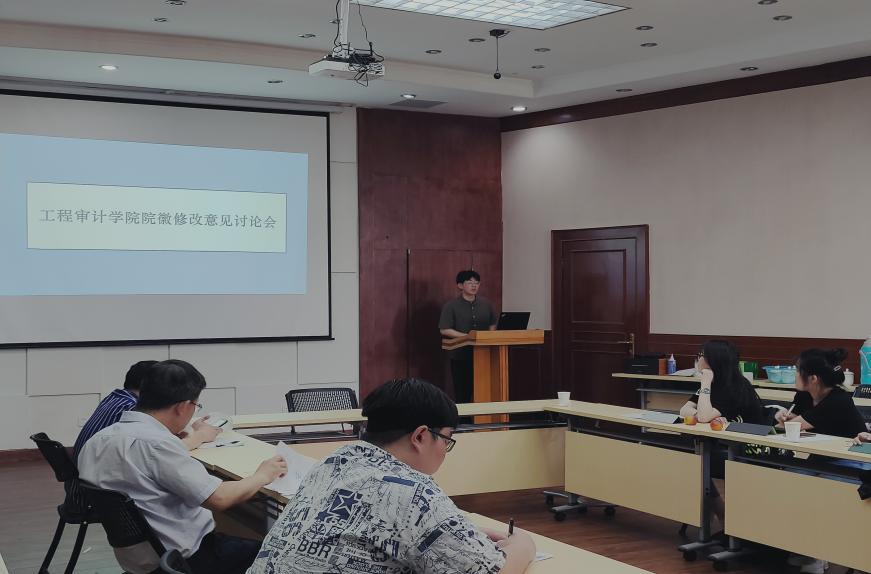 6月9日,williamhill英国院徽修改意见讨论会在致明楼春晖厅召开。williamhill英国院长祝遵宏教授、党总支书记李祥教授、副书记、副院长徐庆阳副教授、副院长葛世龙副教授以及设计代表出席本次讨论会,williamhill英国专业协会会长吕施祺主持会议。