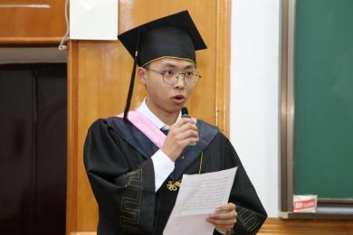 优秀毕业生代表发言。审计专硕202班赵逸恒、工程管理1班黄馨盈、造价2班沈伟鑫分别作为毕业生代表发言。三位在发言中感谢学校、学院领导的殷切关心,感谢老师的谆谆教诲,感谢父母的养育之恩。他们追忆在南审学习、生活的点点滴滴,他们摩拳擦掌地向往未来,他们相信未来是充满希望的,他们蓄势以待。