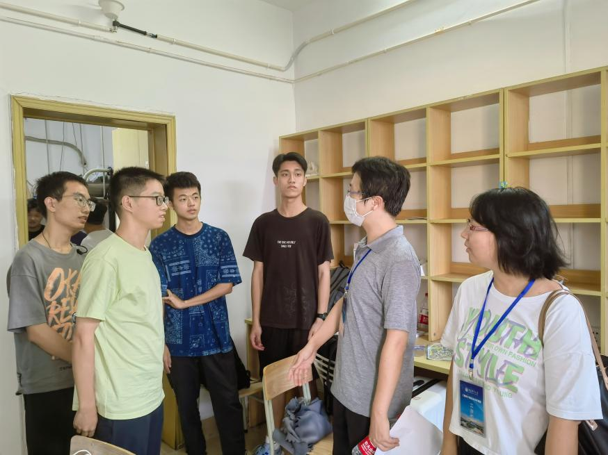 葛世龙副院长携2022级工程造价1班班导师于迪尔,2022级工程造价2班班导师张路以及专业协会宣传部部长陈志媛一同走进2022级新生宿舍,了解已返校学生的适应情况和未返校学生的动态信息。在交流中,新生们对大学生活十分向往,十分好奇。