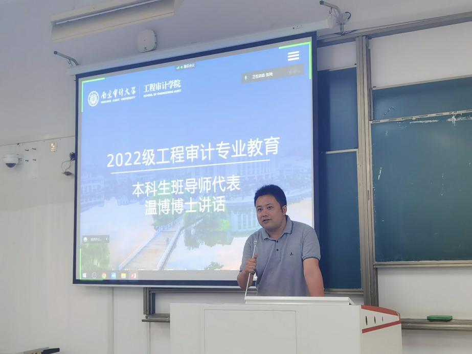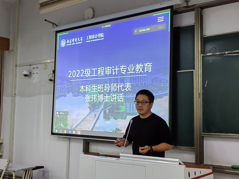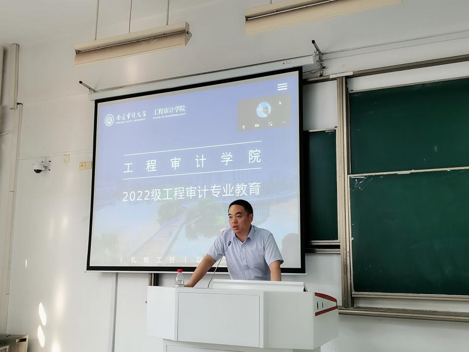 工程审计专业教育由工程审计1班专业班主任许长青老师主持。许长青老师首先带领新生参观了江苏省公共工程审计重点实验室,让大家对各类工程仪器有初步了解。徐庆阳副院长为大家介绍了工程审计专业的发展前景,希望大家可以尽早进入学习状态,保持积极向上的热情和好奇探索的精神。大学期间除了完成学习任务,也要积极参加各项活动。他向工程审计专业的同学们提出要求,一定要严格依照学校制定的培养方案,合理规划四年的大学时光。
