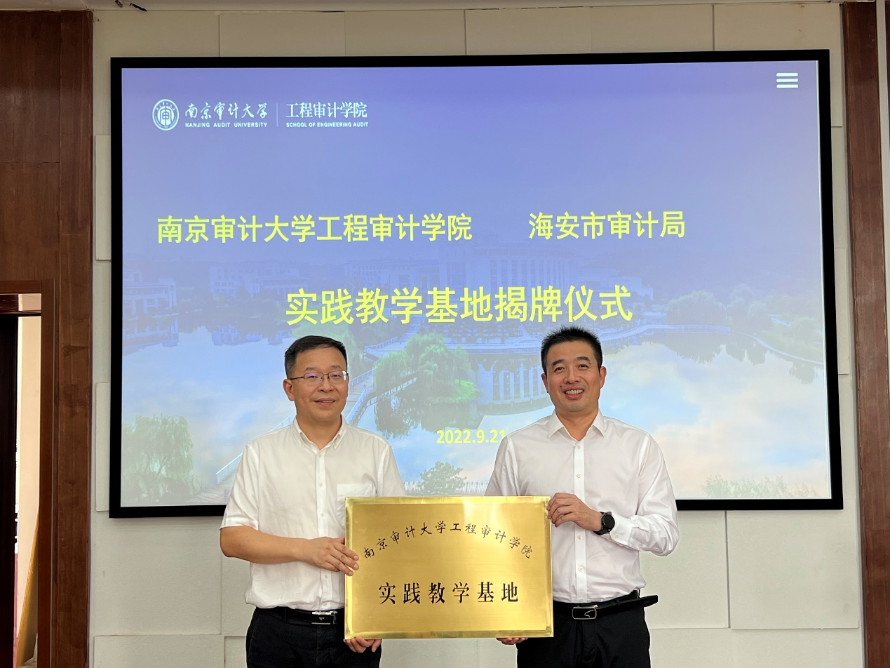 交流活动结束后,祝遵宏院长和尤建局长还为williamhill英国在海安市审计局设立实践教学基地举行揭牌仪式。