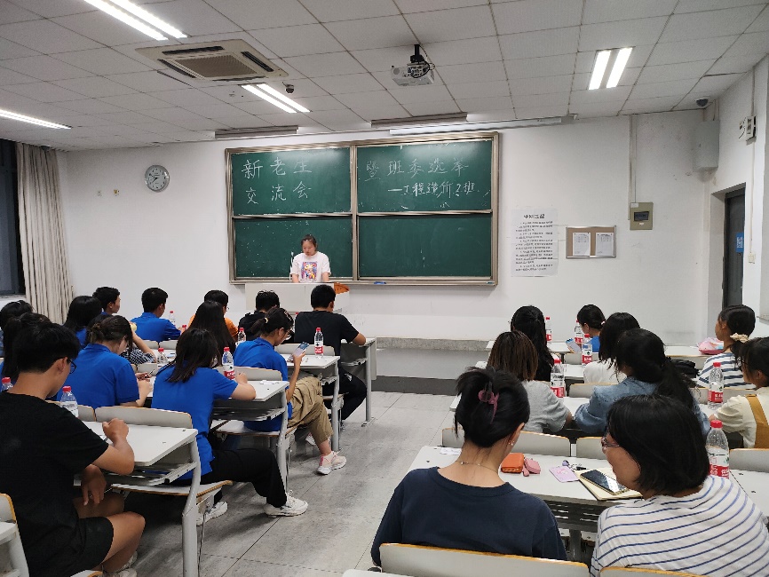 9月25日晚七点,2022级工程造价2班在竞秀北楼501教室举行第二次班级活动暨新老生交流会和班委选举活动。专业班主任张路,辅导员苗竹青,助理辅导员张雪妍、程蔚然,大二学生代表朱俊杰、李璐和王溪源受邀到场。会议由张雪妍和程蔚然共同主持。