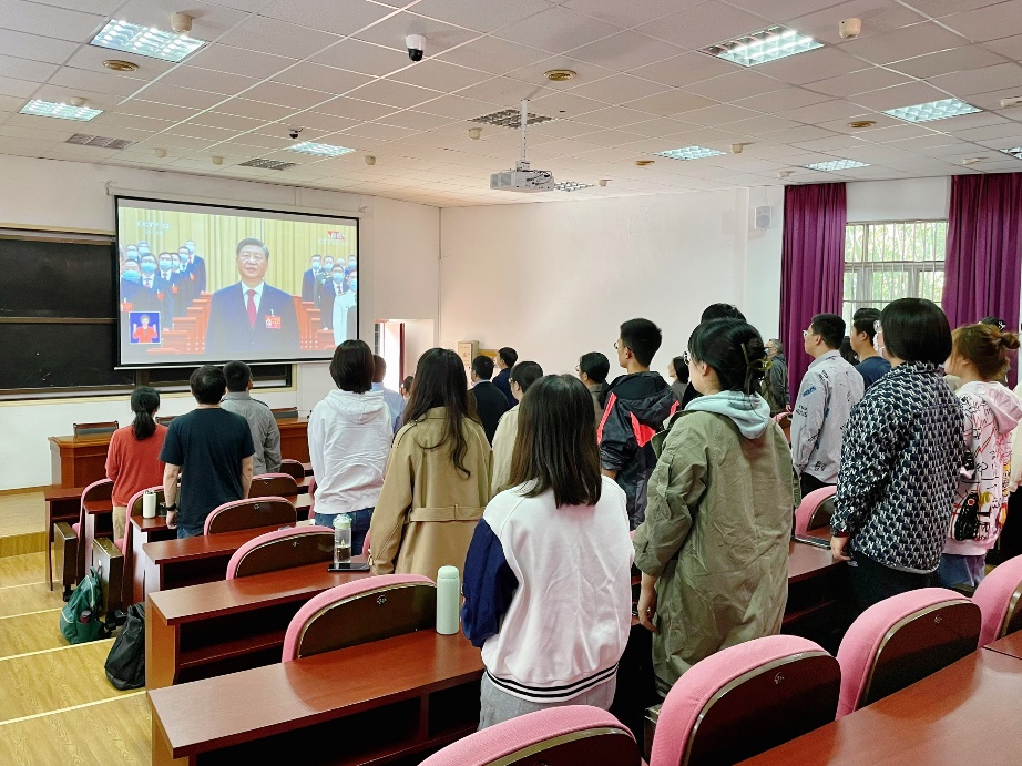 与会师生聚精会神聆听习近平总书记振奋人心的讲话,认识到本次大会是在全党全国各族人民迈上全面建设社会主义现代化国家新征程、向第二个百年奋斗目标进军的关键时刻召开的一次十分重要的大会。习近平总书记所作的报告旗帜鲜明、思想深邃、气势恢宏、催人奋进,报告厅中不时响起阵阵掌声。报告在“实施科教兴国战略,强化现代化建设人才支撑 ”部分的强调,更是令在场研究生心潮澎湃,真切感受到国家和党对教育的重视、自身肩负使命重大。