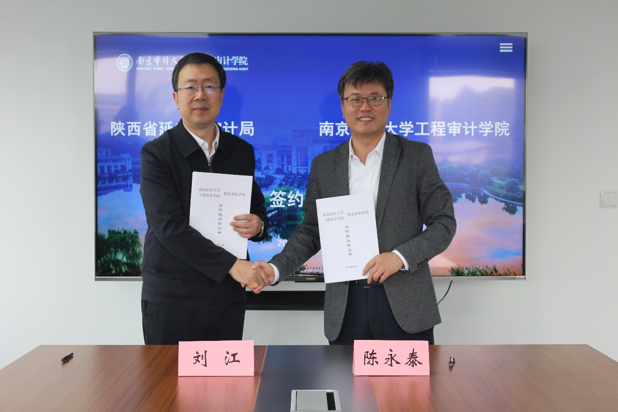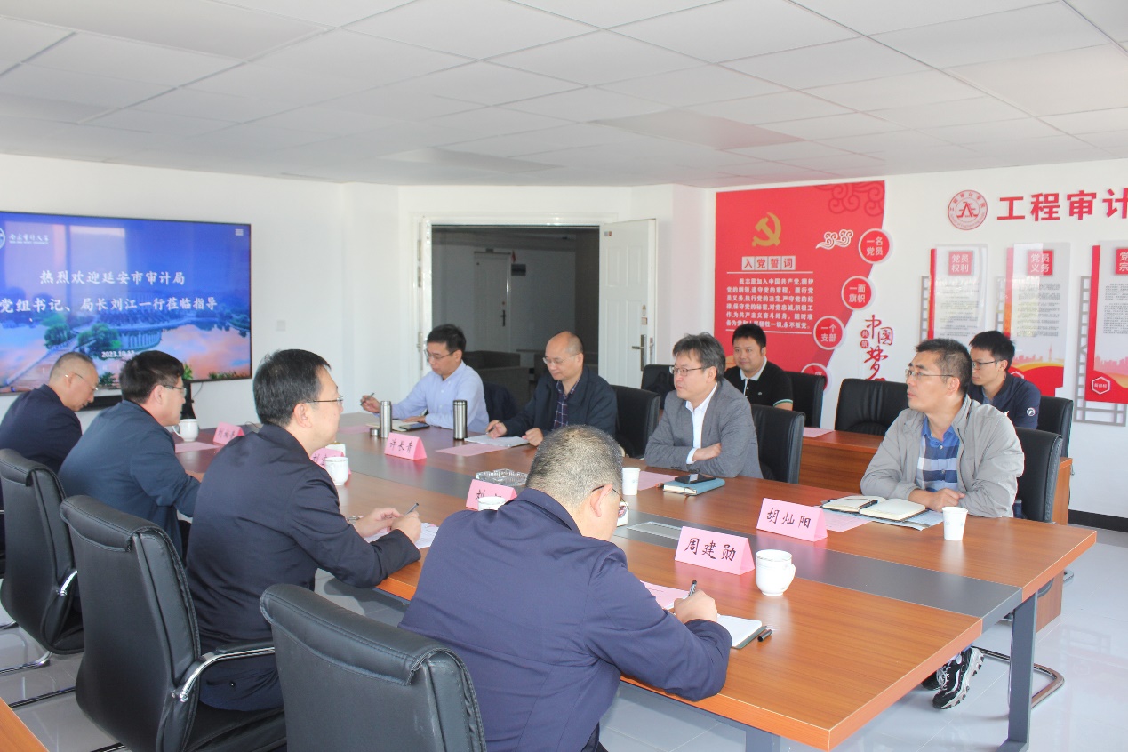 刘江介绍了延安的历史沿革和延安审计局的工作总体情况,希望双方通过此次合作交流,在科学研究、业务培训、审计项目以及实习基地建设等方面开展全方位的合作,用行动印证合作,助力延安市审计工作高质量发展。