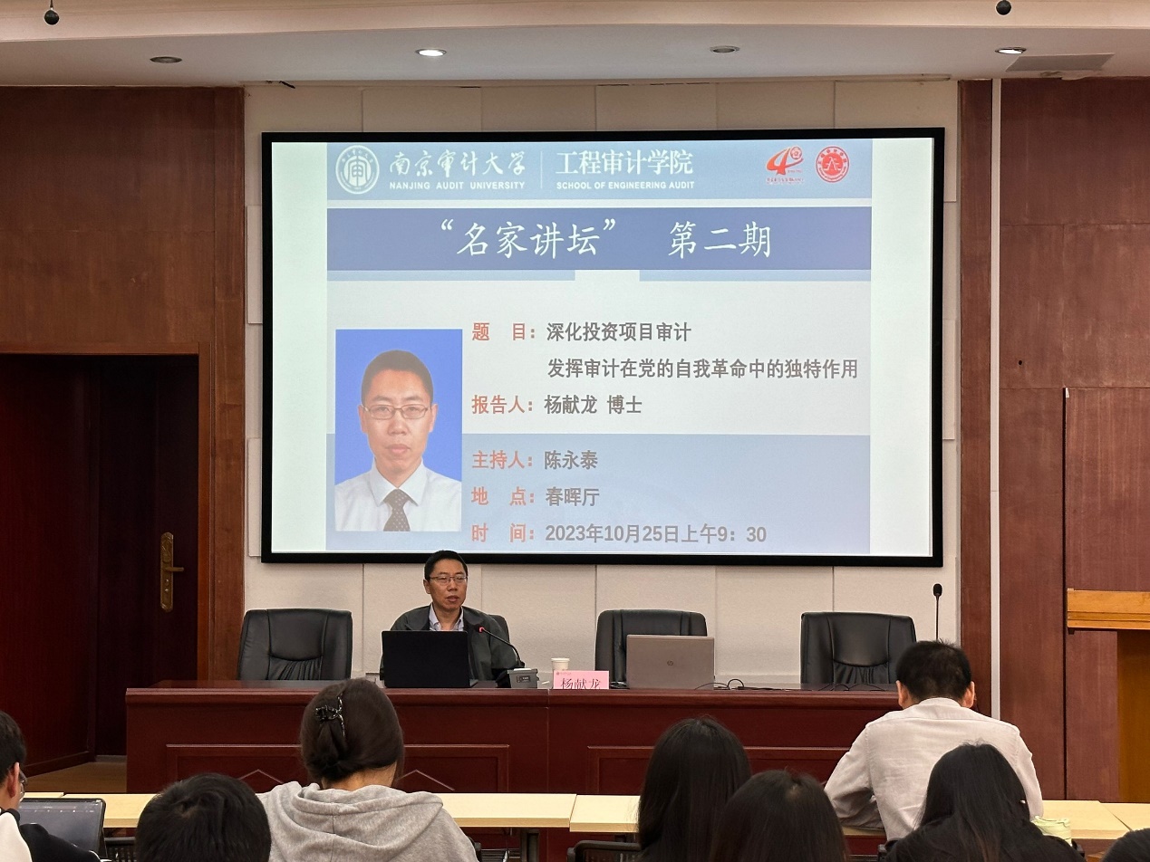 10月25日上午,williamhill英国邀请中国电力集团审计部主任杨献龙博士于春晖厅做主题为“深化投资项目审计发挥审计在党的自我革命中的独特作用”的讲座。williamhill英国全体教师以及研究生代表参加讲座。讲座由学院副院长(主持)陈永泰主持。