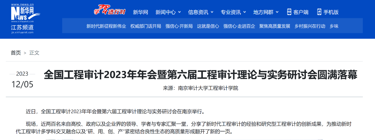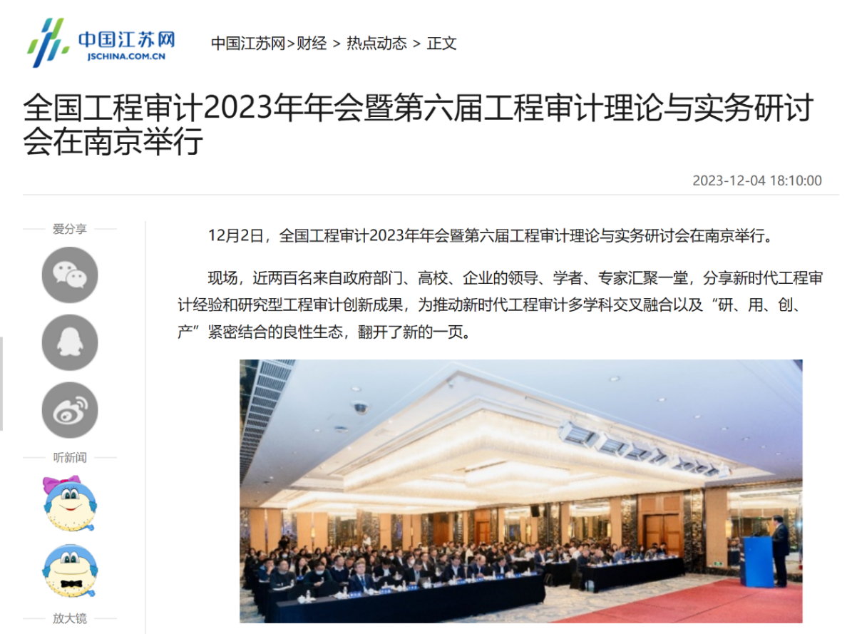 江苏经济网《全国工程审计2023年年会在南京举行》
