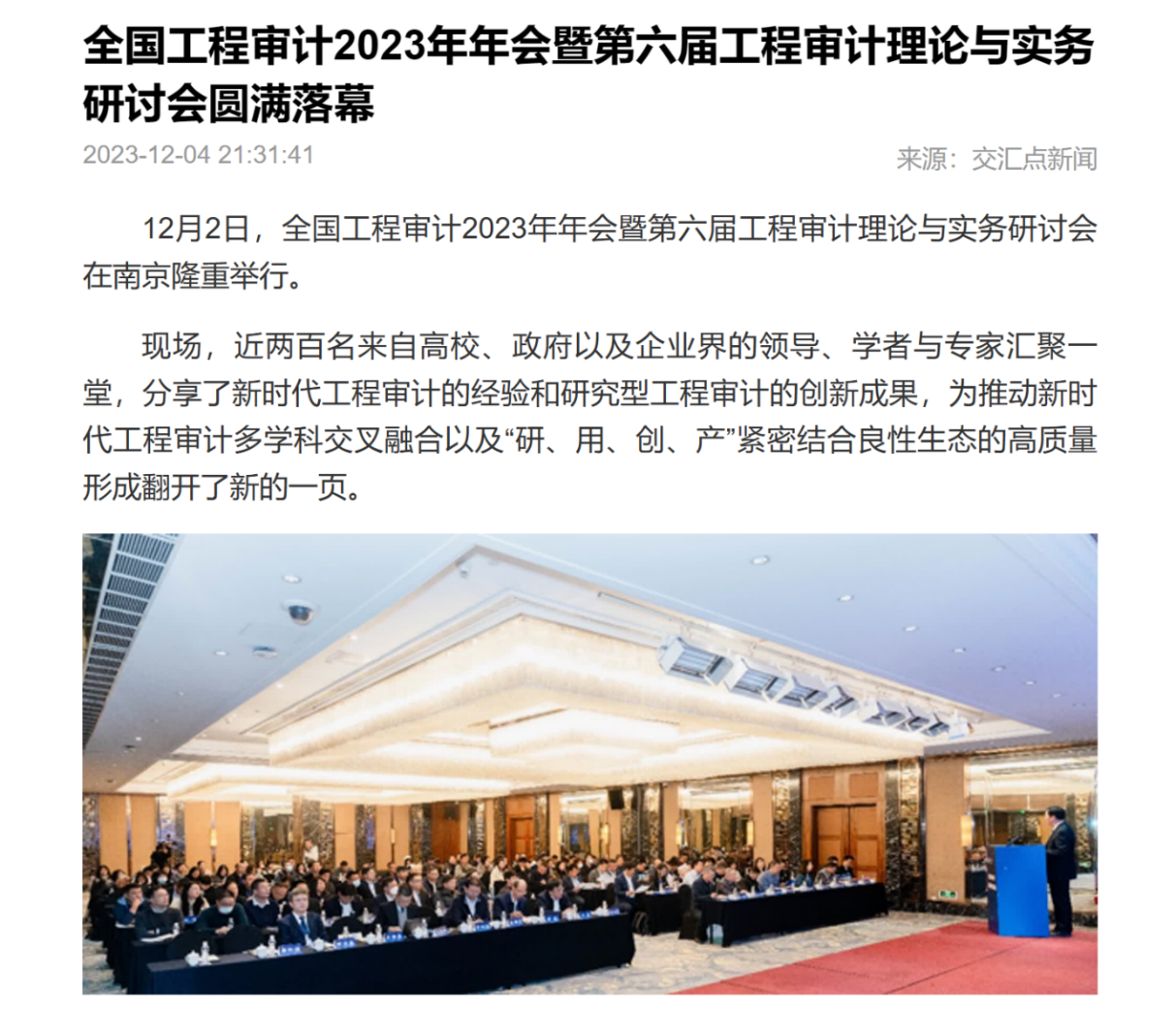 交汇点新闻《全国工程审计2023年年会暨第六届工程审计理论与实务研讨会圆满落幕》