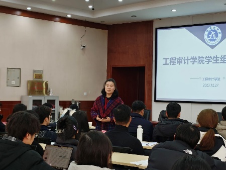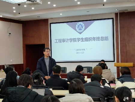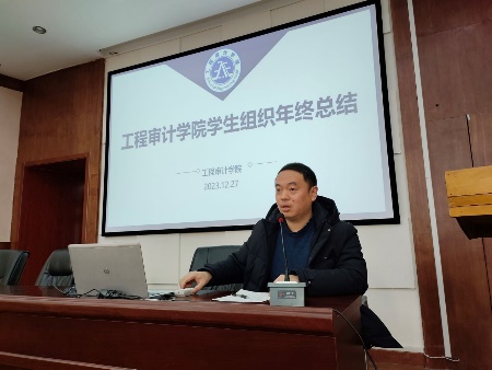 徐庆阳对各学生组织的工作报告进行点评,并就各自未来的发展规划分别提出建议。他指出,BIM学社应聚焦学科竞赛,优化比赛组织,提升获奖层次;院学生会作为学院与书院的联系纽带,应凸显工程审计专业特色,并借鉴其他学院的优秀做法,注意与BIM学社协作互补;院研究生活动要更多围绕学术展开,加强与学院的沟通交流。此外,他对所有学生组织提出共同建议:注重党建引领,明确自身定位,做好宣传,提升知名度。
