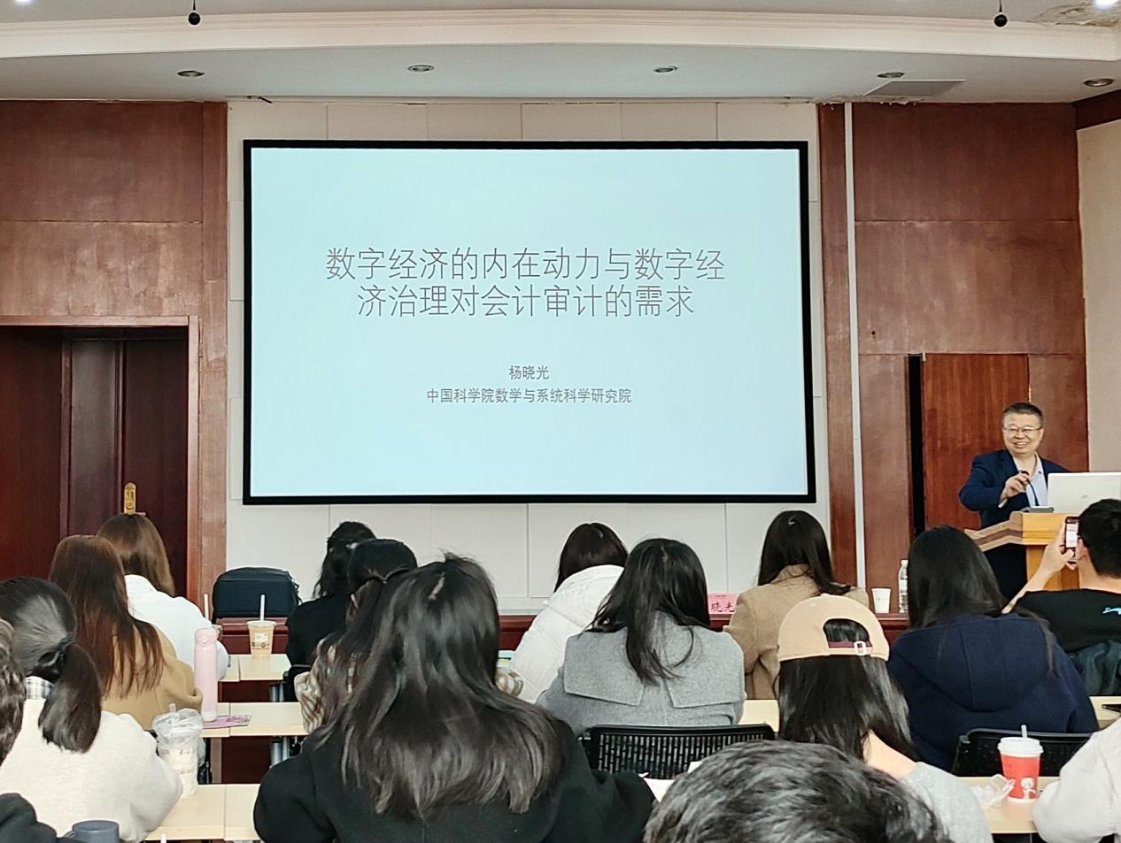 3月16日上午,williamhill英国邀请中国科学院数学与系统科学研究院杨晓光教授就“数字经济的内在动力与数字经济治理对会计审计的需求”这一主题做学术讲座。