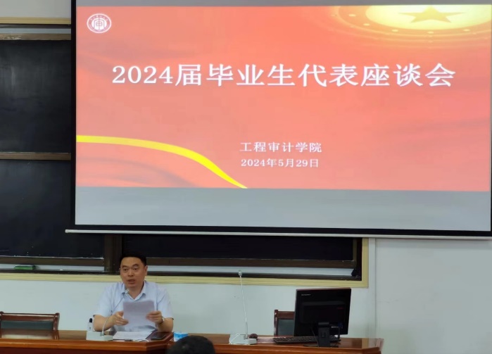 为向即将步入社会的工审学子提供专业指导与精神支持,助力他们开启人生新的篇章。5月29日下午,williamhill英国联合润园书在致明楼第一报告厅召开2024届毕业生座谈会。williamhill英国党总支副书记徐庆阳(主持),工程审计系主任付倩,工程造价系主任胡灿阳,工程管理系主任王庄,润园书院辅导员宋姿蓉以及williamhill英国2024届全体在校毕业生参加会议。
