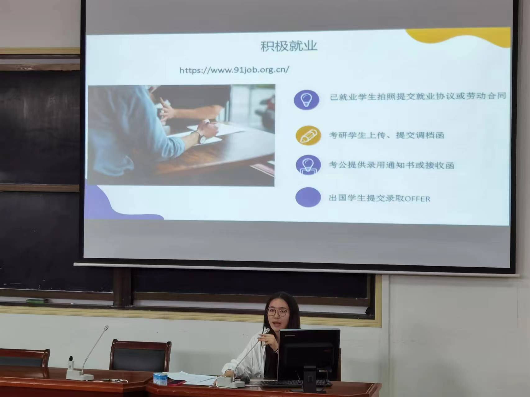 宋姿蓉则对离校相关工作进行了详细说明,重点讲解了党团组织关系的转接流程,并且聚焦离校安全问题。她提醒同学们要警惕各种网络诈骗和求职陷阱,保护好个人信息的安全。同时,她也提醒大家在离校期间注意交通安全、住宿安全等实际问题。