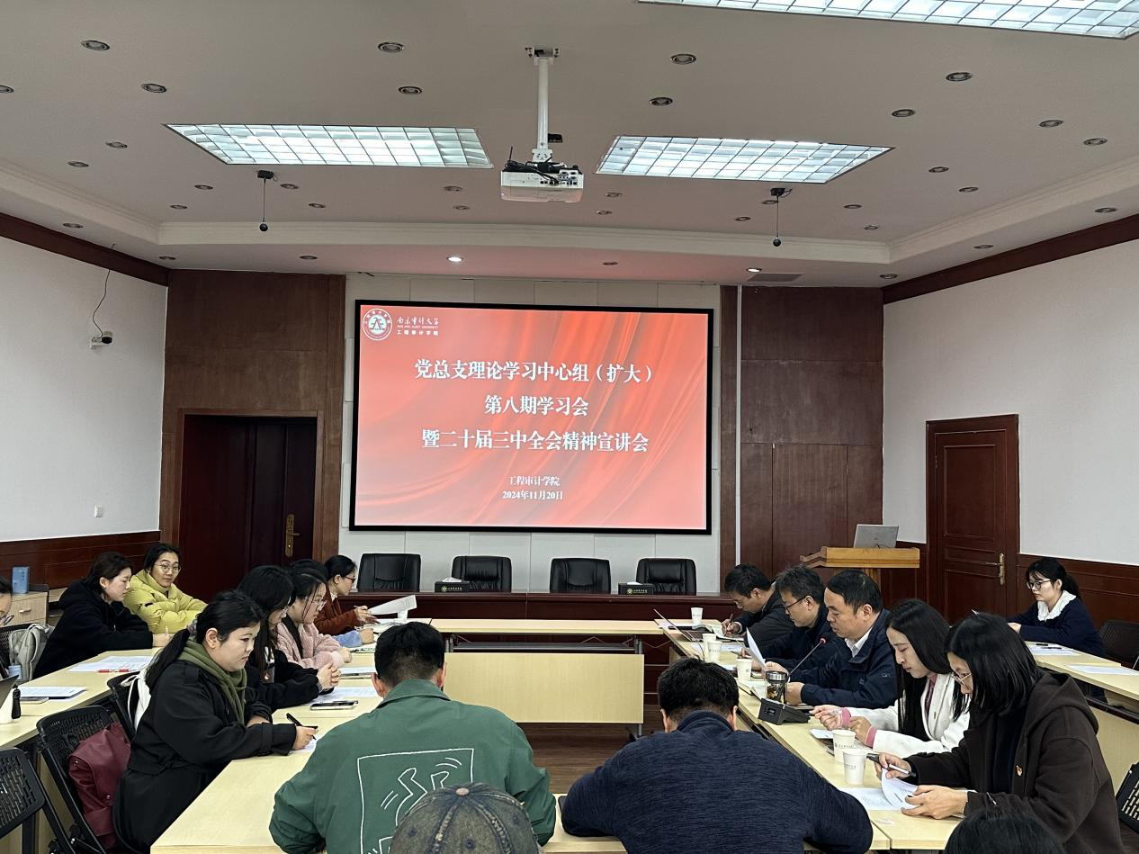 2024年11月20日下午,williamhill英国党总支理论学习中心组(扩大)第八期学习会暨二十届三中全会精神宣讲会在致明楼春晖厅举行。学院领导班子、总支委员、支部书记,以及30名研究生党员和入党积极分子参加学习会,会议由党总支副书记徐庆阳(主持)主持。