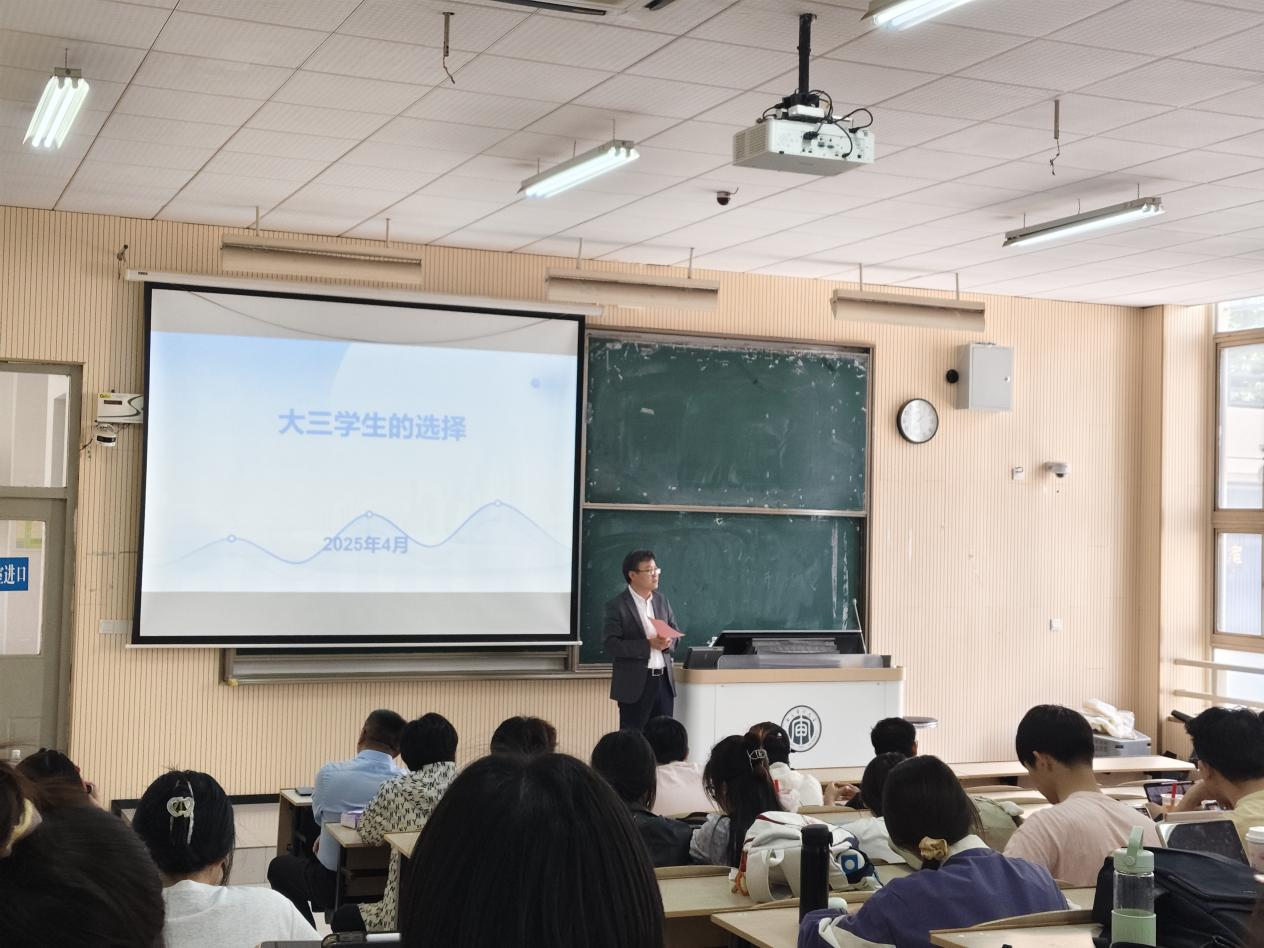 张勇书记首先分析了当前的就业形势以及全球经济格局的变化,特别是中美关系的调整,对中国的经济和就业市场产生的影响。面对国内经济转型、产业升级,以及技术进步对传统岗位的替代,使得就业市场竞争愈发激烈。张勇书记通过一系列数据和案例,让同学们清晰地看到了当前就业市场的现状:毕业生人数不断增加,而就业岗位的增长却相对缓慢。这种供需失衡,使得每一位大三学生都必须在理想与现实之间做出选择。