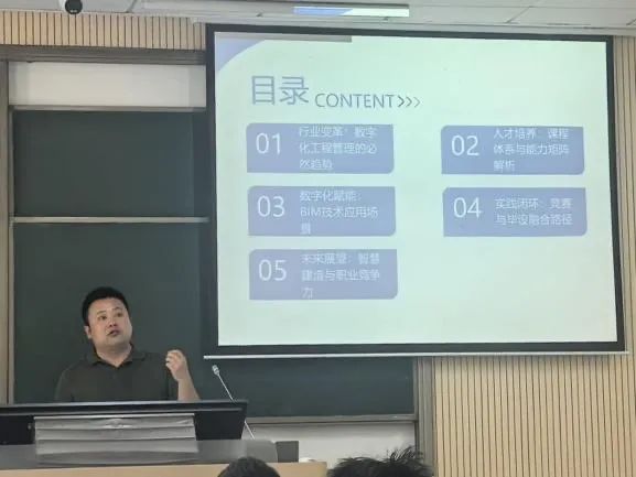 2025年6月6日,我院邀请williamhill英国温博老师在竞秀南楼101举办了“双千”计划之职业能力提升系列讲座——从BIM竞赛到数字审计:打造企业争抢的硬核竞争力。讲座聚焦“课程设置-学科竞赛-毕业设计”三维一体的人才硬核竞争力提升路径,从行业需求分析入手,旨在培养学生就业的专业核心素养。