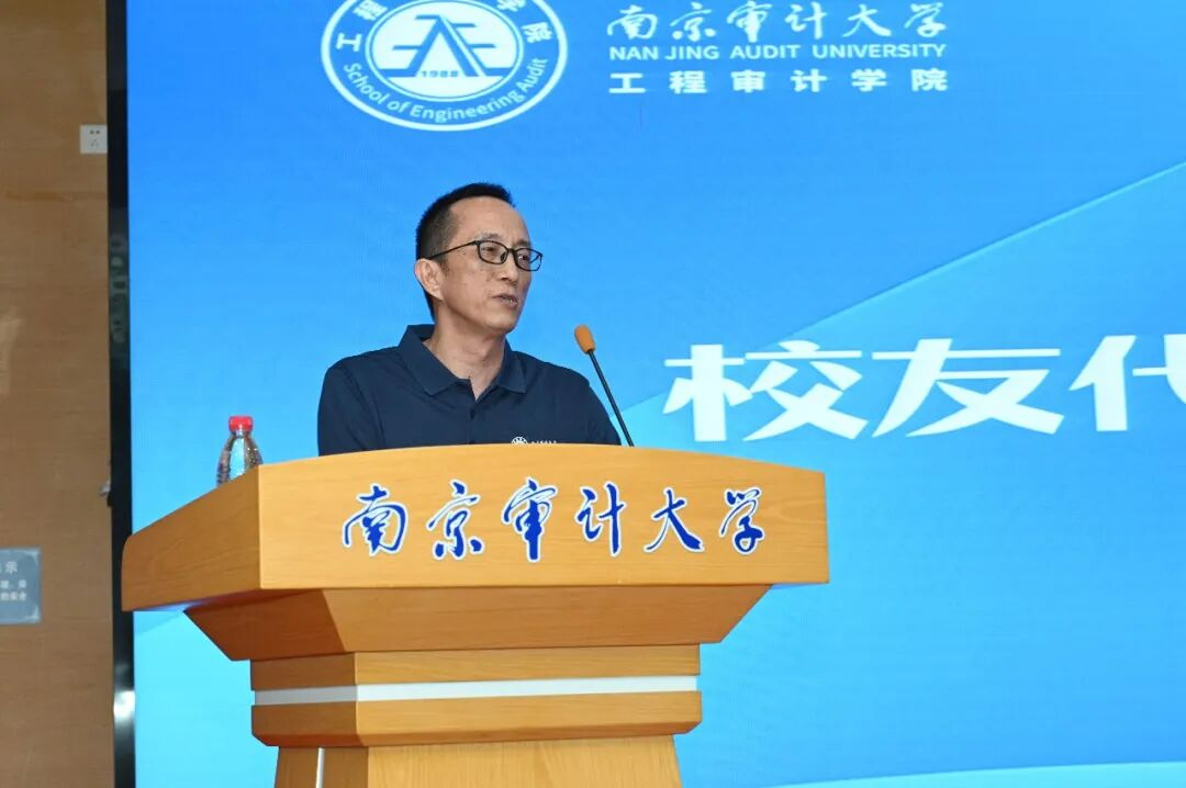 1994级校友、工程审计校友联谊会秘书长薛海浩结合自身从一线施工到数字化审计的30年从业经历,向新生强调了工程审计已发展成为“工程+审计+计算机”的复合型赛道,建议新生夯实基础、扎根实践、拥抱数字时代。