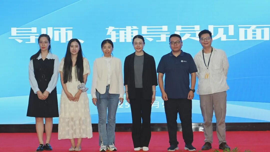 在温馨的导师见面环节,主持人一一介绍学院全体导师和辅导员。