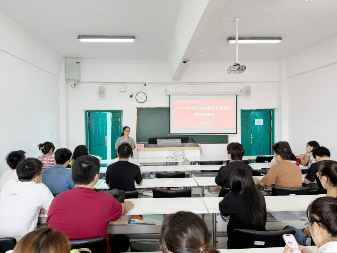 11 位候选人各展所长,现场掌声不断。经无记名投票,黄诗雨、王寨等 9 名同学脱颖而出,组成 2025 级审计专硕班委团队。
