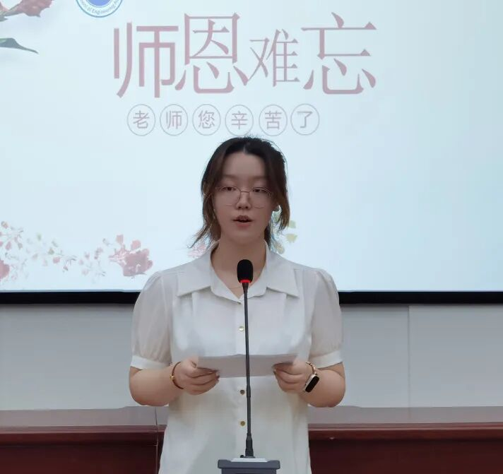 24级戴梦玲以韩愈“道之所存,师之所存”致敬老师“文明接力者”的身份;24级史亦彤用“师者如灯、如舟”感恩老师“以学识为墨、以关怀为笔”;24级王世月以“桃李不言,下自成蹊”收尾,代表全体学生喊出“我们会用成长硕果回报您的青春与汗水”。