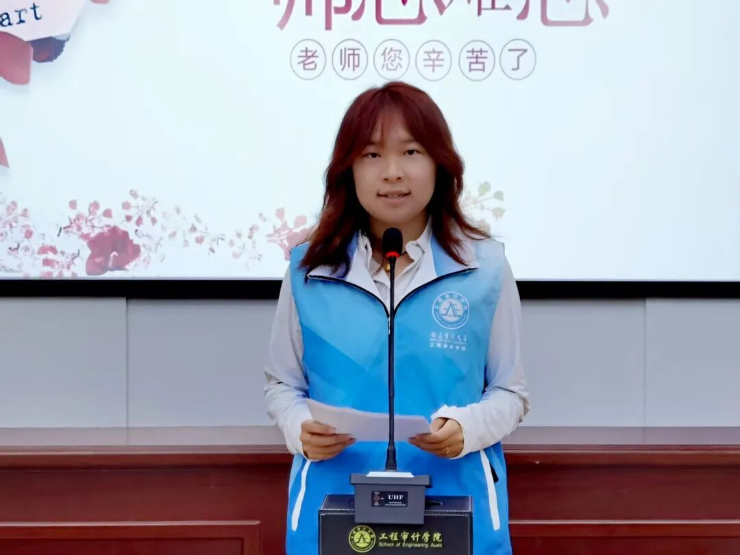 24级苏雅楠揭秘老师暑期自费跑工地、翻烂行业资料的“隐藏剧情”;23 级戴可可把辅导员比作“月亮”,“倾听与陪伴点亮心灵微光”;24 级韩明娜用实践课金句“审计是项目安全阀,差之毫厘谬以千里”承诺把严谨刻进未来。