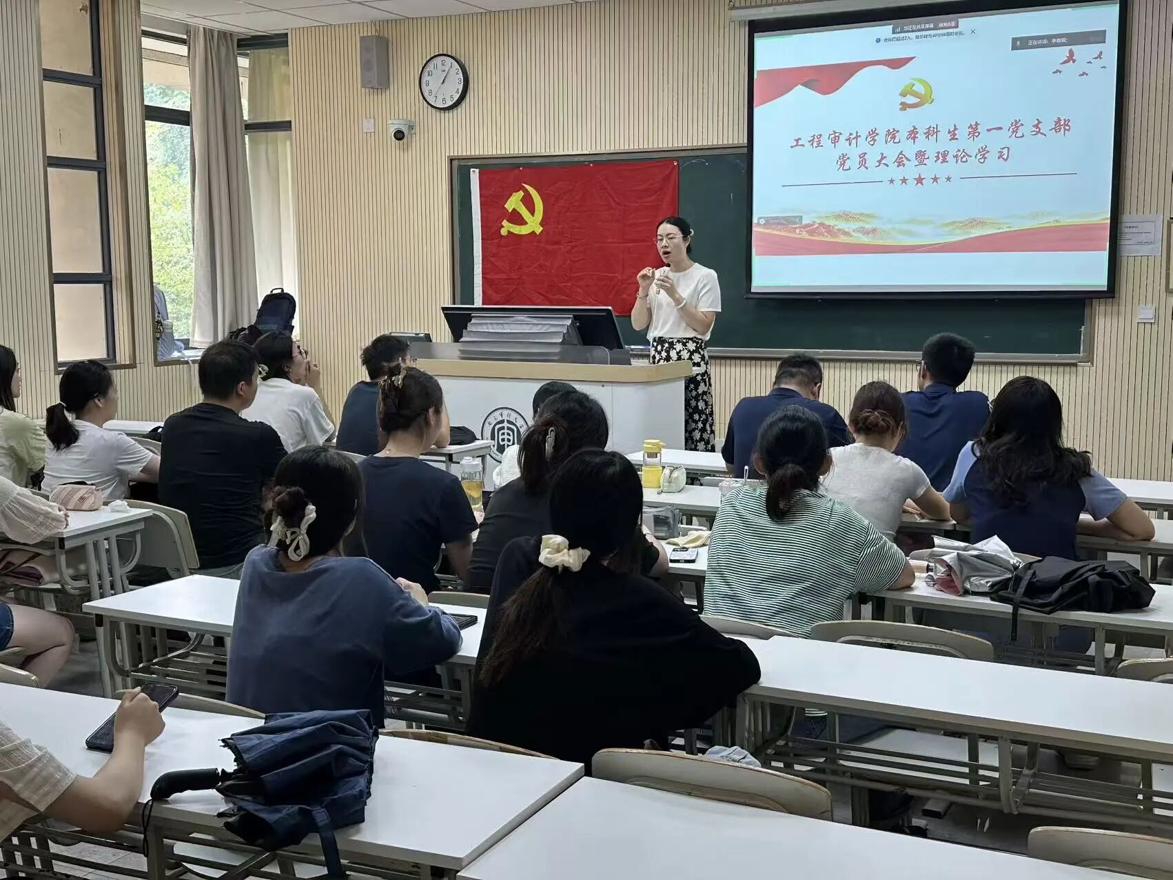 学习过程中,本科生第一党支部书记张震武结合支部党员多为青年学生的特点提出要求,强调全体党员要带着“青年使命”学,既要准确把握理论内涵,更要联系学业科研实际,把“百团大战”等革命历史中蕴含的奋斗精神转化为攻坚克难的学习动力,在专业学习中践行党员担当;本科生第二党支部书记陈晋唯则聚焦学习实效提出要求,指出要避免“学用脱节”,需结合审计专业特色领会“人民城市理念”“文化自信”等重要论述,思考如何在未来实践中以专业能力服务社会,切实将理论学习与个人成长、支部建设相融合。